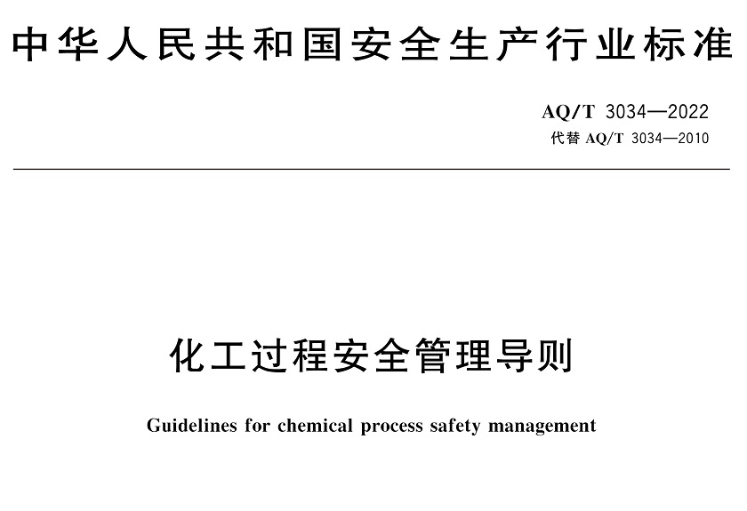 中華人民共和國安全生產行業標準|AQT3034-2022化工過程安全管理導則全文